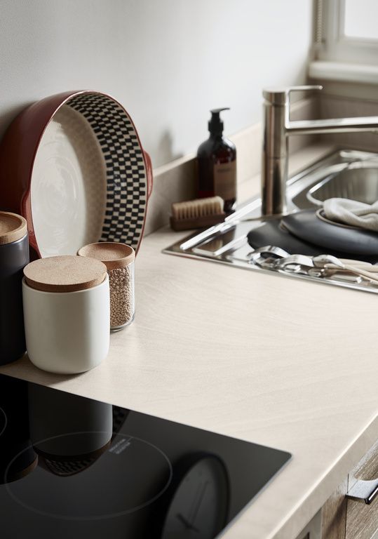Highlight Your Kitchen S Beautiful Curves To The Max With Contrasting Solid Wooden Worktops Complement With Grey Kitchen Floor Curved Kitchen Laminate Kitchen