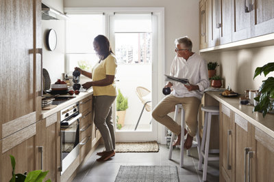 Chia Light Oak Effect Slab Fitted Kitchens Diy At B Q