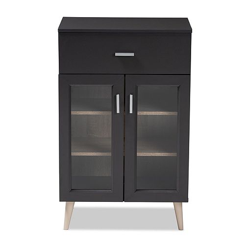 Baxton Studio Savino Wine Cabinet Charcoal In The Wine Storage