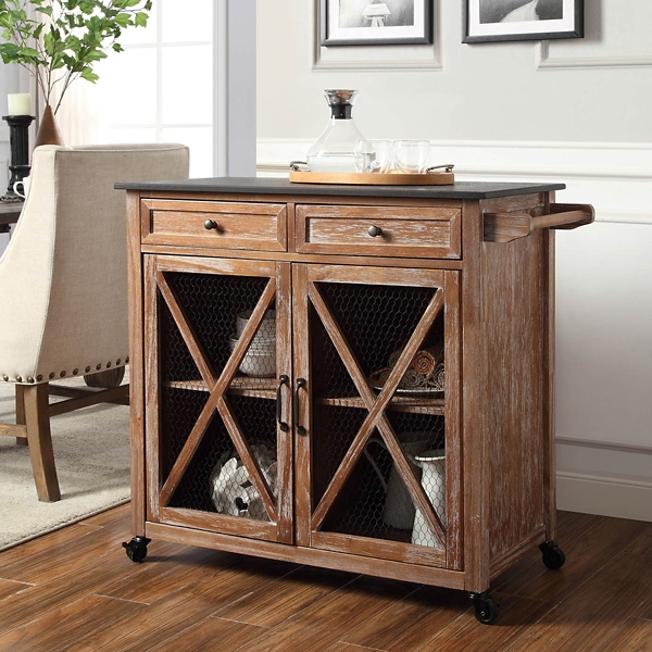 Wood Rolling Chicken Wire 2 Door Kitchen Cart Kirklands