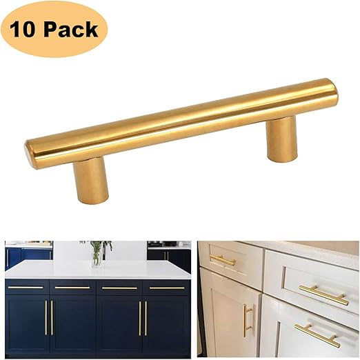 Gold cabinet handles 5pack square cabinet pull bar brushed brass bathroom cupboard handle kitchen dresser pulls and knobs brass sigle t knob 2 length 50mm. Javascript seems to be disabled in your browser. Kitchen and cabinet pull handles classic to modern designs can transform the room with little effort.