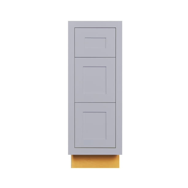 12 Wide Drawer Base Kitchen Cabinet Three 3 Drawers Light Gray
