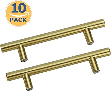 5 Pack Gold Cabinet Handles Brass Kitchen Drawer Pulls Knobs Gold