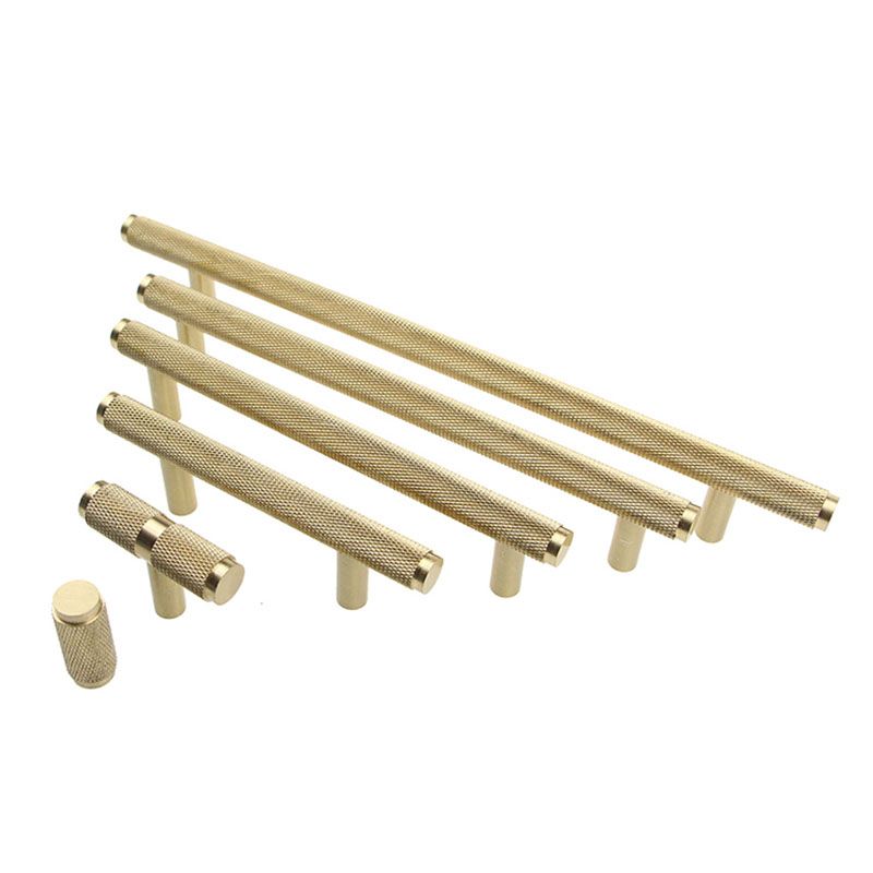 China Solid Brushed Brass T Bar Drawer Handles Knurled Handle For