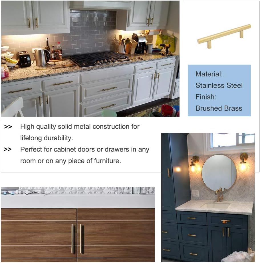 China T Bar Brass Kitchen Cabinet Handles Pulls Gold Bathroom