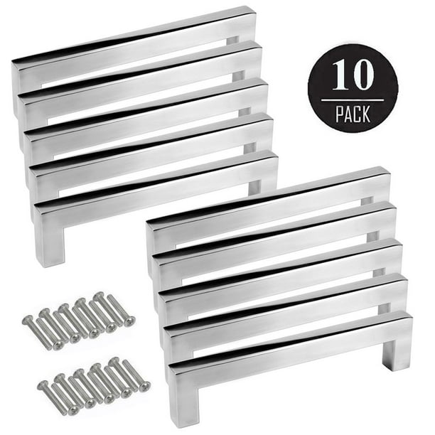 5 Stainless Steel Modern Kitchen Cabinet Handles Nickel Square