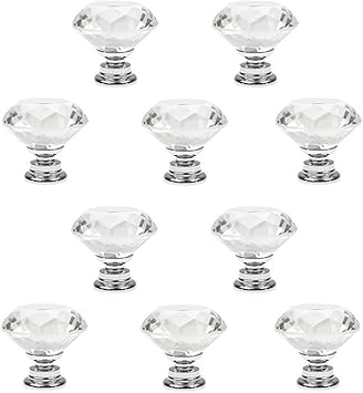 10 Pcs Crystal Glass Cabinet Knobs 30mm Diamond Shape Drawer