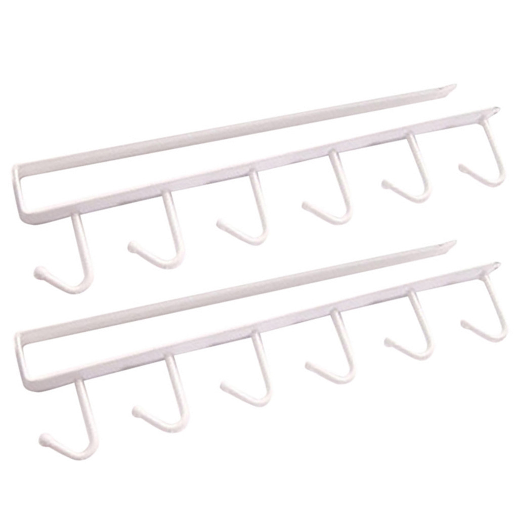 6 Hooks Cup Holder Hang Kitchen Cabinet Under Shelf Storage Rack