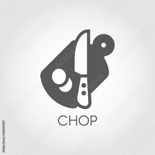 Flat Icon Of Cutting Board Knife And Pieces Of Abstract Product Chopping Desk Kitchen Utensils Theme Vector