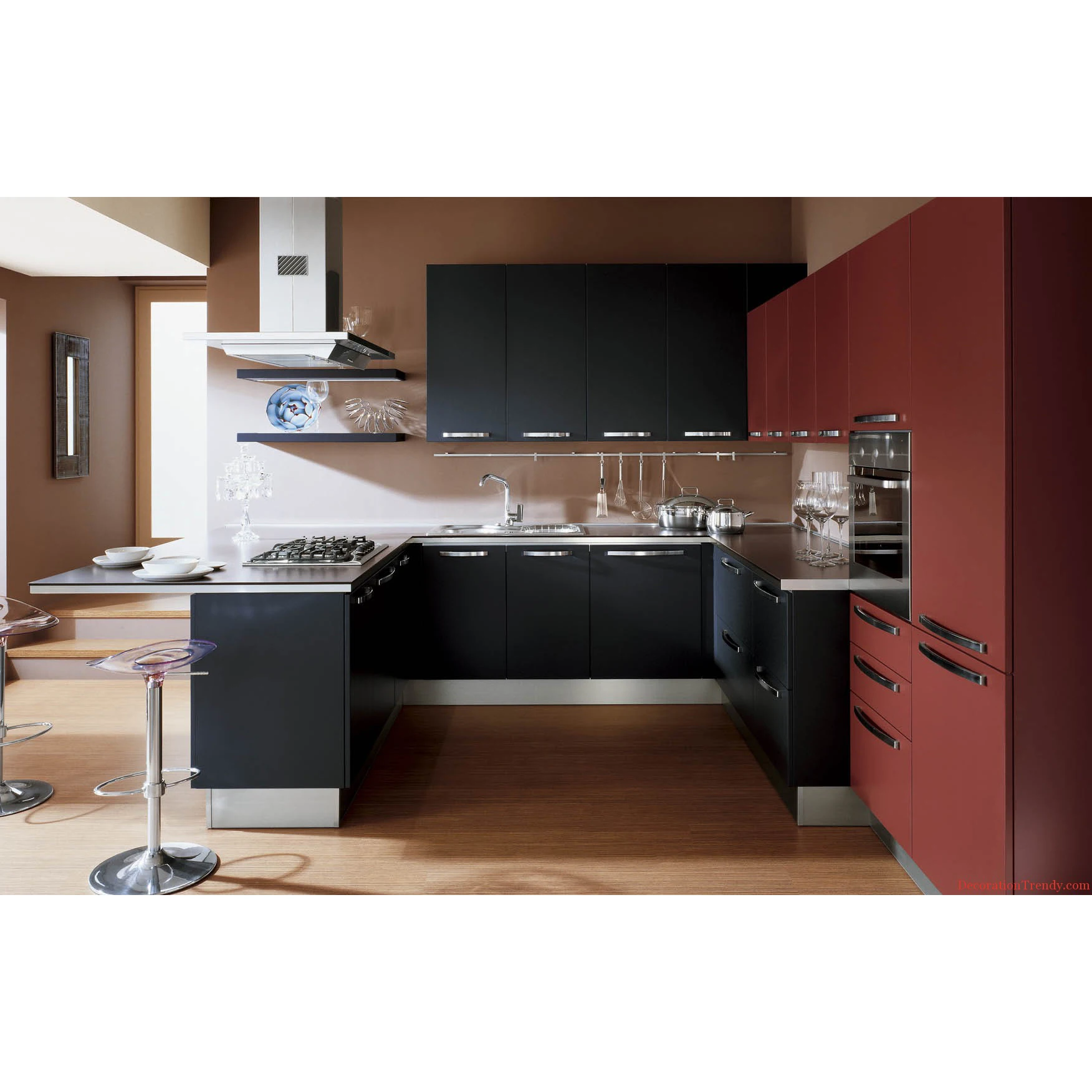Red Cherry Wood Kitchen Cabinet With Simple Design